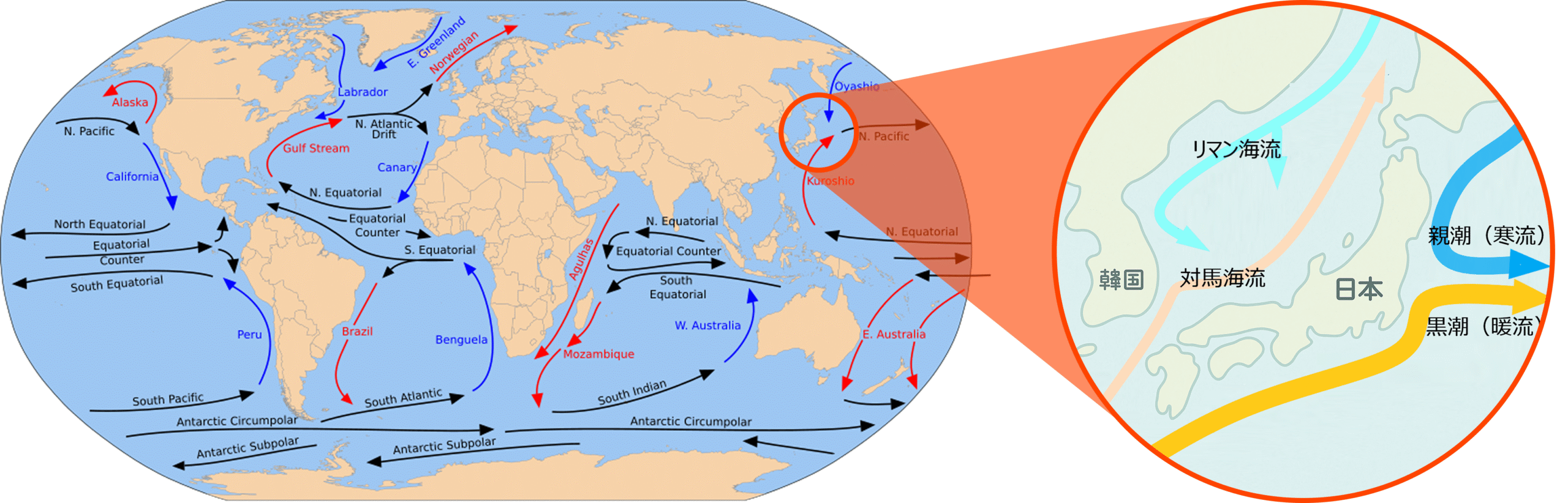 北極・南極からの寒流が循環しています。
